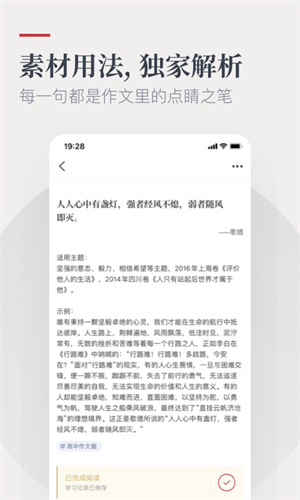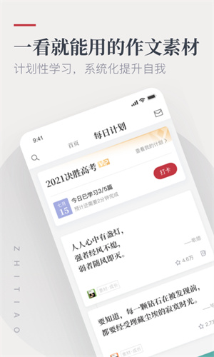 4、每天一篇文章,分享热点时事评论、人物素材、经典寓意名词解读和高考中考优秀作文点评等内容,力求为中学生们提供更新鲜更全面的写作素材。