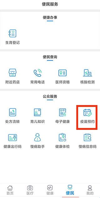 2、选择“疫苗预约”。