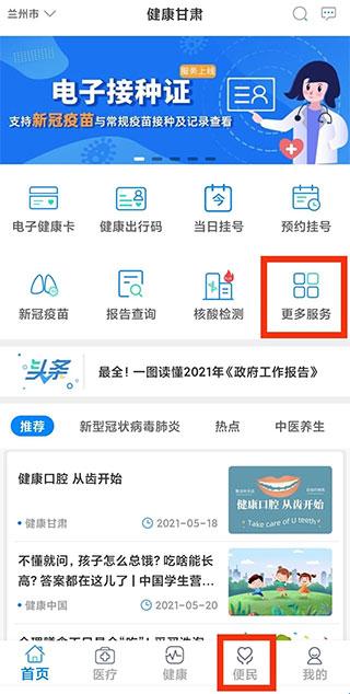 1、进入“健康甘肃APP”,点击“更多服务”。