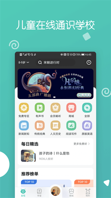 智能推荐匹配内容,碎片时间伴随式收听,轻课,不费眼,有趣、前沿、启发思考。