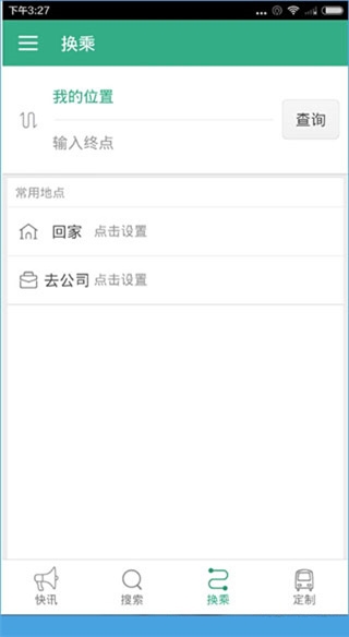 3、进入到换乘界面,用户可以输入你目前所在地和需要到达的终点,进行查询换乘的线路;