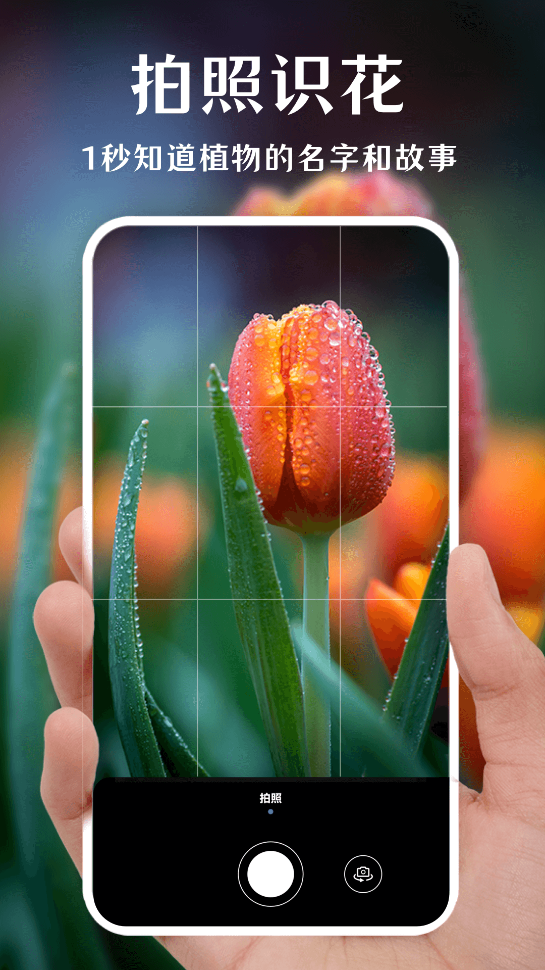 1、拍照识别:一键拍照,只需数秒,即可完成植物识别,不管是什么类型的花花草草,都不在话下