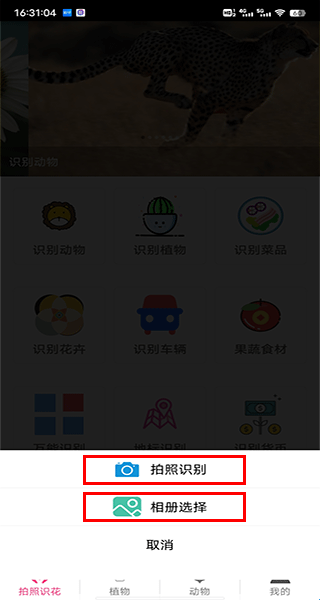 2、相片识别:将手机相册里的图片导入本应用,即可快速精准识别各类植物、动物、菜肴、地标等