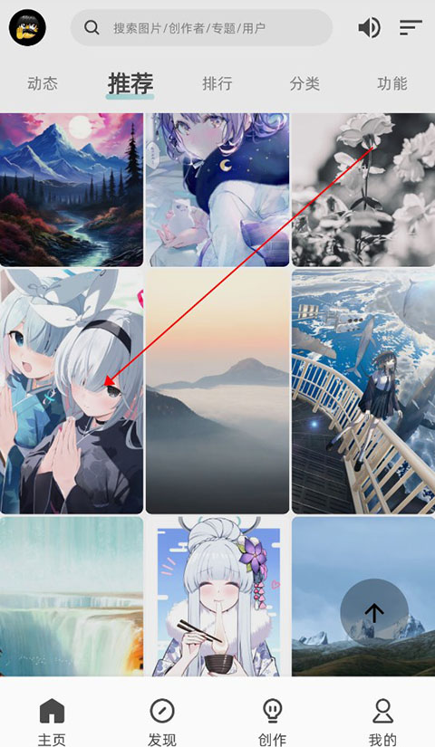 1、首页会持续推荐新上架的4K壁纸资源,而且都是由软件里的绘画大触手动上传的。