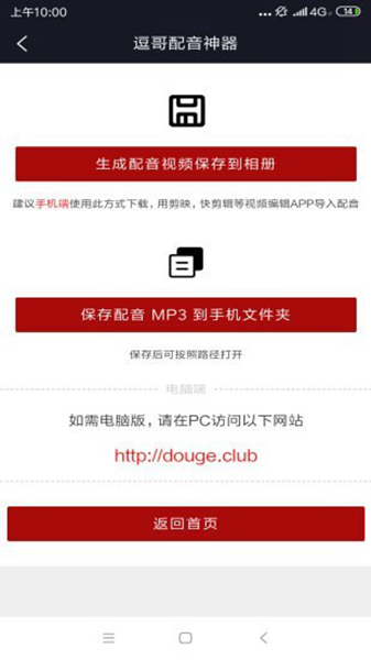 导出音频:逗哥配音神器app 支持复制链接及生成视频版音频。