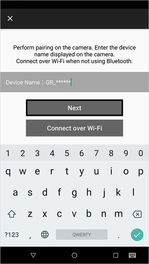 ③ 在应用程序的配对屏幕上输入显示的设备名称。