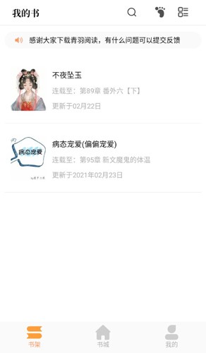 还在愁找不到喜欢的小说?还总遇小说断更难题?青羽阅读app绝对是你的绝佳选择!作为一款超棒的掌上阅读软件,它有着众多优质小说资源,无论你钟情哪种类型,都能在此轻松找到。海量书籍任你挑选,让你告别书荒。而且能有效避免断更烦恼,全方位满足你的阅读需求,随时随地开启畅快阅读之旅。