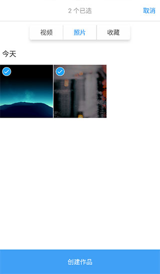 4、挑选需要编辑的照片和视频片段,点击“创建作品”。