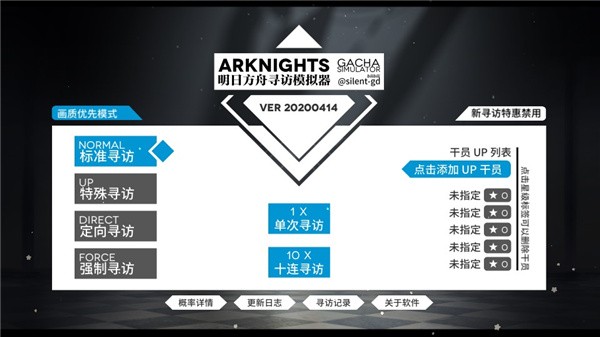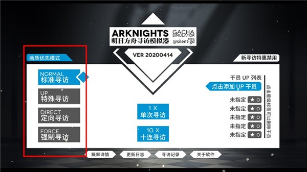 2、进入模拟器后,在屏幕左侧可以看到四种不同的寻访模式。