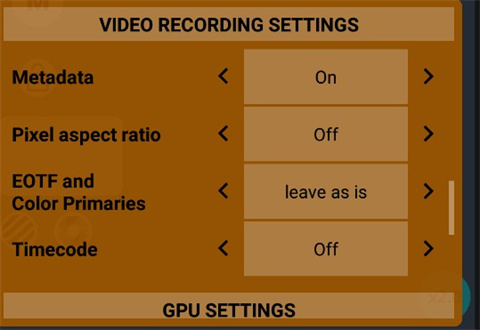 11、视频设置方面,首先设置的就是视频分辨率了。这里有两种设置,一种是使用GPU,一种是不使用GPU。使用GPU可以对视频画面进行风格化调整(本期不做介绍),不使用就不能调整,但是我们一般是使用不到的,并且许多中低端手机芯片阉割了部分GPU功能,使得某些手机原生就不能使用GPU进行高分辨率或者高帧率的视频拍摄。这个时候就体现出这款软件的强大之处了,软件可以绕过GPU进行画面输出,开放了高分辨率高帧率的视频拍摄选项,如果我们在“使用GPU”选项中没有看到60FPS内的3840*2160的4K60帧选项,我们就可以选择“禁用GPU”选项中看看,相信一定能给你带来惊喜。