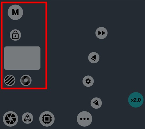 5、然后我们就来到了二号红框,这里主要是调节感光度,快门速度和曝光补偿,原始界面为左图,点击M变为右图。