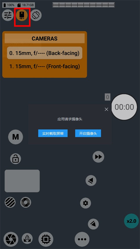 3、当前使用镜头就是选择拍摄时使用的镜头,一般选择手机主镜头进行拍摄,因为主镜头的光学素质最好,主镜头焦段一般为22-24mm,软件也会对镜头位置进行标注,方便用户进行选择,下图为编者手机镜头。