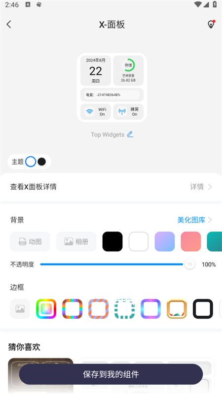功能丰富:拥有超过100种组件及样式,从简单的照片布局到功能性组件如倒数日、步数、X-面板等,应有尽有,满足你的个性需求。