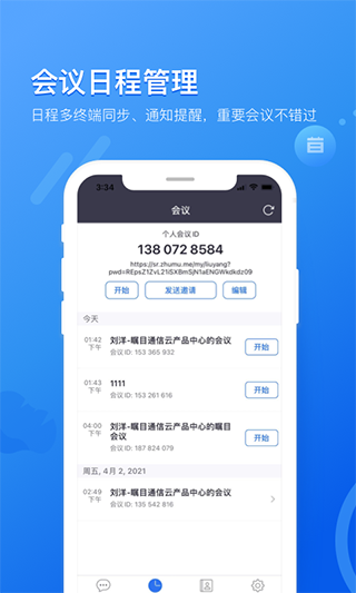 6、通过通讯录、短信或IM邀请参会,支持接入H.323协议室系统等