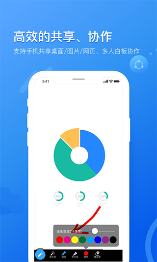 3、实时白板协作,支持分组会议,共享文档、图像和网页