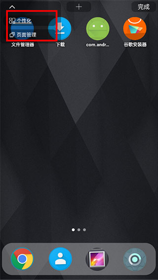 5、这时你可以进行个性化和页面管理对桌面设置;