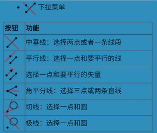 垂线、中垂线、平行线、等矢量、角平分线、切线、极线