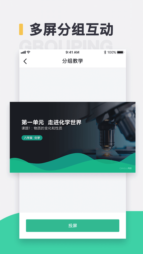 1、分组教学演示:学生分为若干小组后,可以把自己的摄像头画面,投射到小组中屏,和小组成员进行讨论。