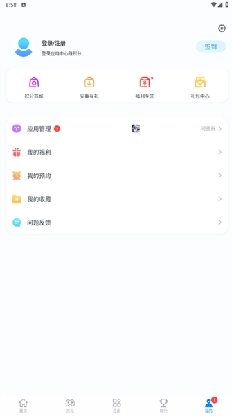 1.点击进入手机应用市场,在我的界面点击头像框,进入个人界面