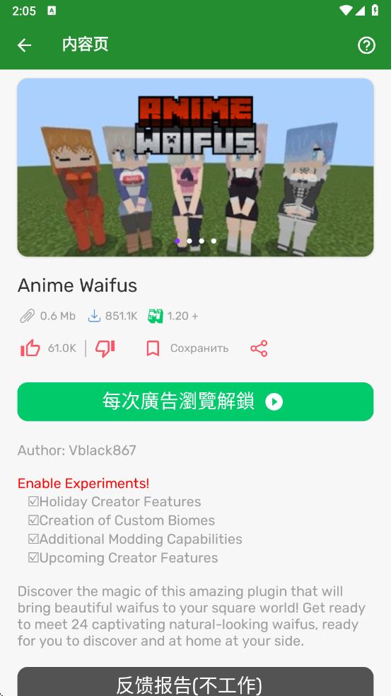 3、点击感兴趣的地图模组进入详情页,看完广告解锁后,就可以免费下载使用了。
