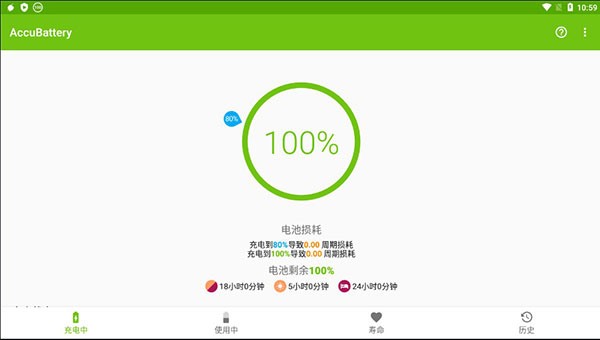 4、在寿命中能够看到电池的寿命和容量估计,并有电池损耗的图表查看;