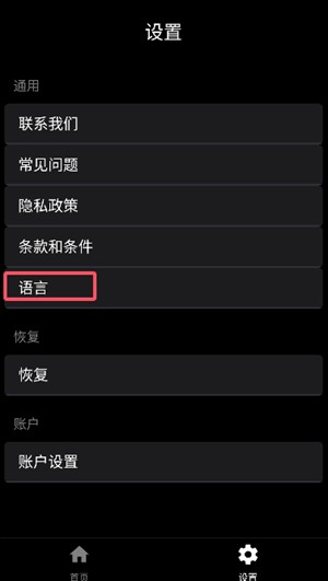 5、找到语言选项,点击后在下拉中找到【中文】,切换成功后就能设置成中文。