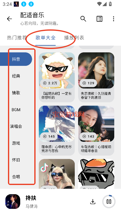 进入歌单大全,还有超多歌曲分类,可以根据类型进行歌曲筛选