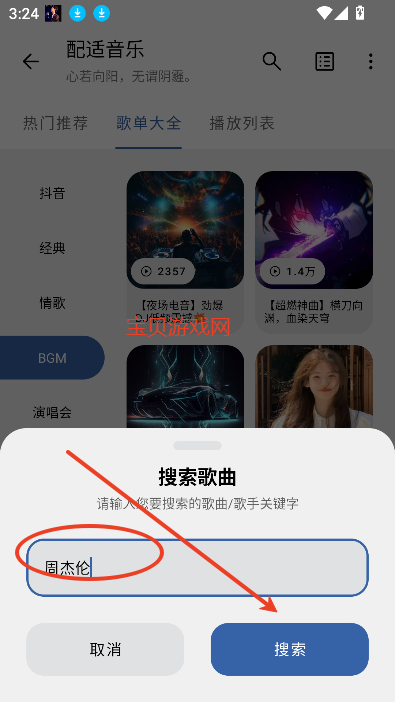 还能够关键词直接检索,点击确定,检索喜欢的音乐