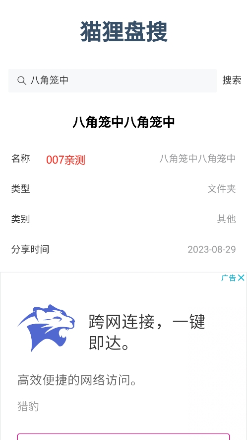 1、猫狸盘搜将多家网盘资源的查找功用进行了整合,能够供给一站式的网盘资源查找服务。