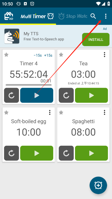 4、一次管理多个计时器:您可以保留以前设置的计时器,当您再次使用它们时,无需再次设置,只需触摸它们即可!
