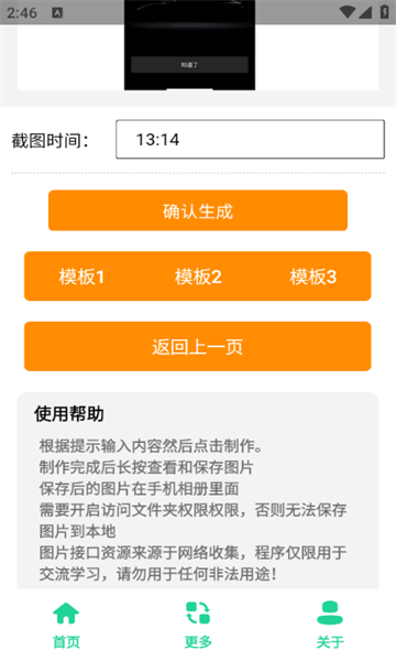2、启动软件后,用户可以根据自己的需求选择合适的订单模板,点击生成按钮后,软件会自动生成订单截图,并将其保存到手机相册中。
