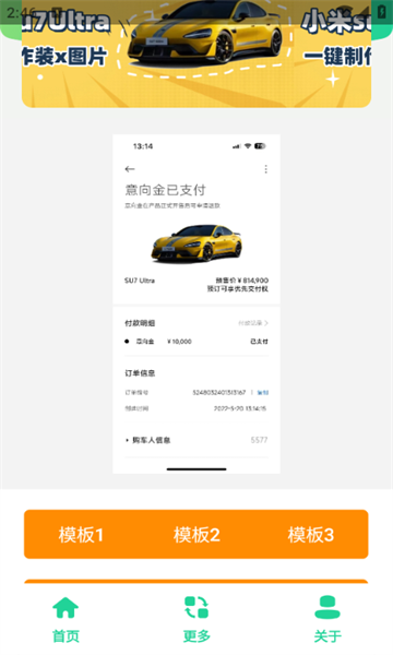 2、在社交媒体盛行的今天,很多人都希望能够通过独特的内容吸引他人的目光,而小米SU7Ultra订单生成器APP正是满足这一需求的绝佳工具。