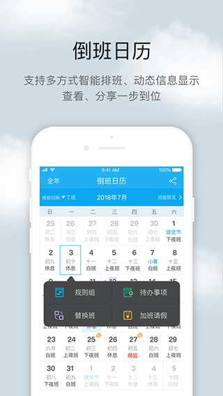 倒班助手app这是一款专为倒班设计的软件,为广大一线倒班人员提供贴心服务的一款手机APP应用软件,支持倒班日历查询,倒班闹钟、条件闹钟提醒,待办事项记录,倒班信息云端上传、下载以及生成二维码等多种功能。